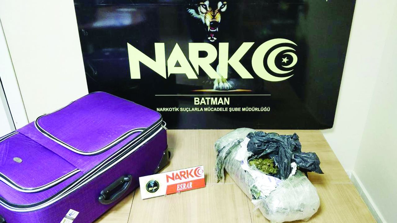 Emniyet açıklamasında, uyuşturucu madde ticareti yapan ve kullanan şahıslara yönelik yapılan çalışmalarda, elde edilen bilgiler doğrultusunda Diyarbakır çıkışında durdurulan şehirlerarası otobüsteki şahsın üzerinde ve valizinde arama yapıldığı ifade edildi.