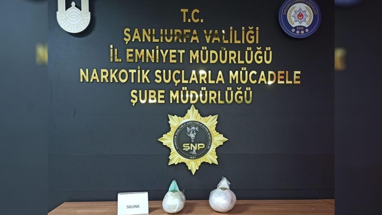 Şanlıurfa Valiliği tarafından yapılan açıklamada, "27.03.2023 tarihinde Narkotik Suçlarla Mücadele Şube Müdürlüğü görevlilerimizce “Uyuşturucu Madde Kullanımı ve Satışıyla Mücadele” kapsamında yapılan operasyonda; durdurulan bir otobüste yakalanan bir şahsa ait bagajda 2 paket halinde toplam 2100 gram skunk maddesi ele geçirilmiş, olay ile bağlantısı bulunan şüpheli 1 şahıs yakalanarak gözaltına alınmıştır." denildi.