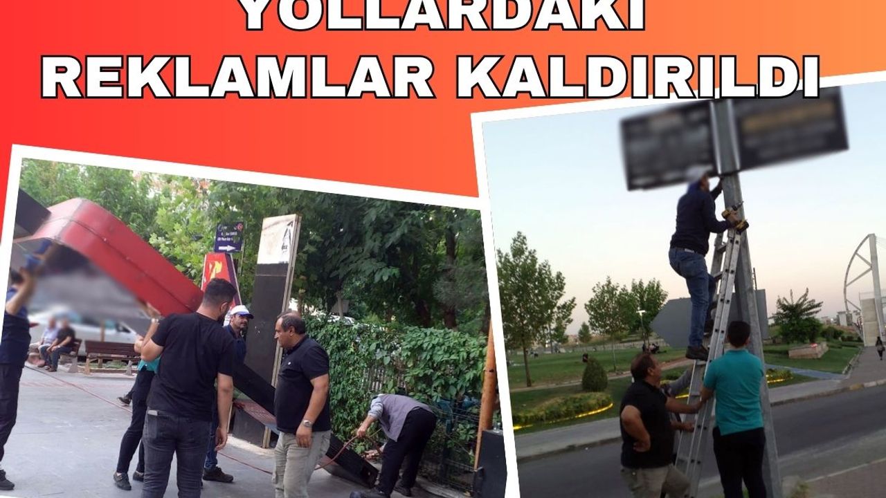 Zabıta, Fen İşleri ve Mali hizmetler Müdürlüğüne bağlı ilan reklam servisi ekipleri; kaldırım, park, orta refüj ve benzeri alanlarda konumlandırılan totem, tabela, reklam panoları, yelken flema gibi tanıtıcı unsurları topladı.