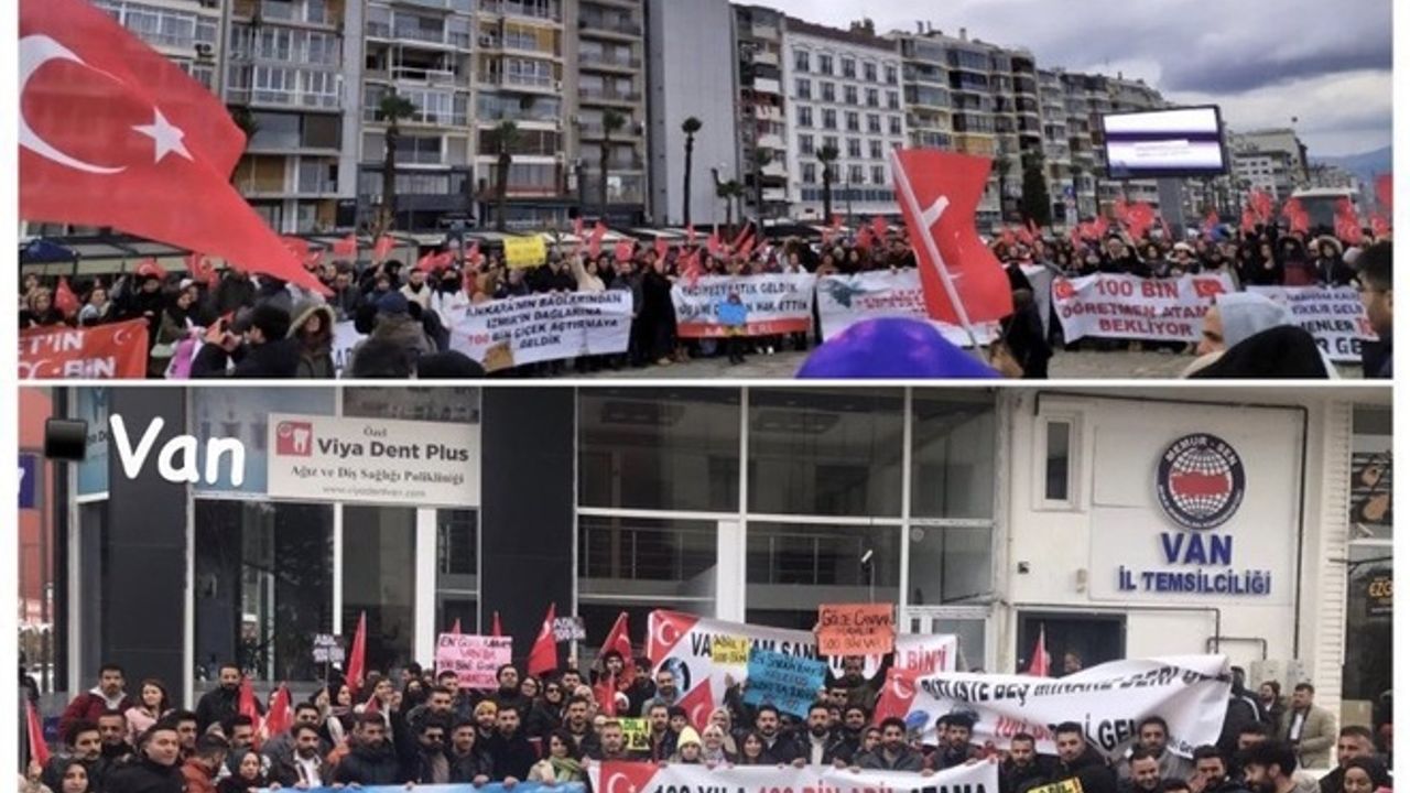 Öğretmen ihtiyacına rağmen yeterli sayıda atamanın yapılmaması tepkilere sebep oldu. KPSS'ye giren binlerce öğretmen adayı aylardır atama haberi bekliyor. Meydanlardan ve sosyal medyadan yapılan çağrılara rağmen Milli Eğitim Bakanlığı'ndan henüz öğretmen atamasıyla ilgili resmi bir açıklama yapılmadı. İzmir ve Van'da bugün 100 bin atama talebiyle eş zamanlı olarak #DoğudanBatıya100BinAtama sloganıyla basın açıklaması düzenlendi.