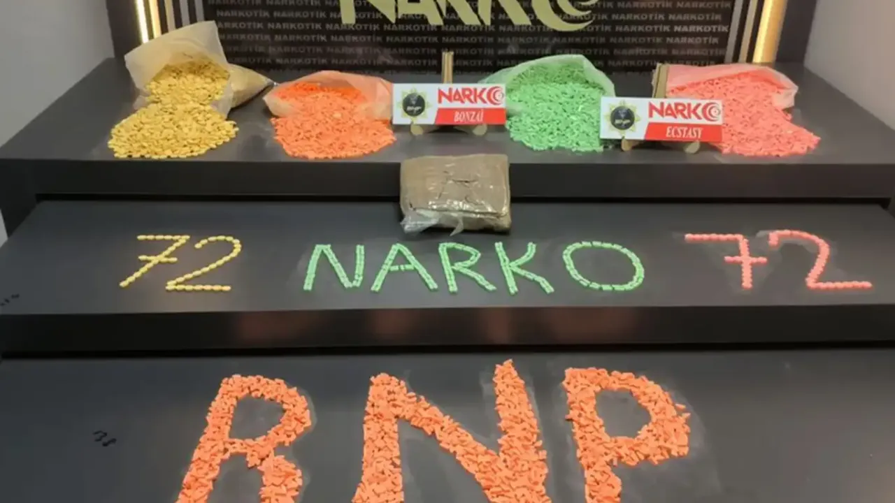 Petrolkent Mahallesi Bostan Caddesinde ekiplerin dur ihtarına uymayarak kaçmaya çalışan ve tarlaya girerek kaza yapan araç içerisinde ve devamında yapılan ikamet aramalarında; Farklı renklerde toplam 8 kilo 222 gram yaklaşık (19 bin) adet ecstasy, 1 kilo 32 gram sentetik kannabinoid (Bonzai) uyuşturucu maddesi ele geçirildiği belirtildi.