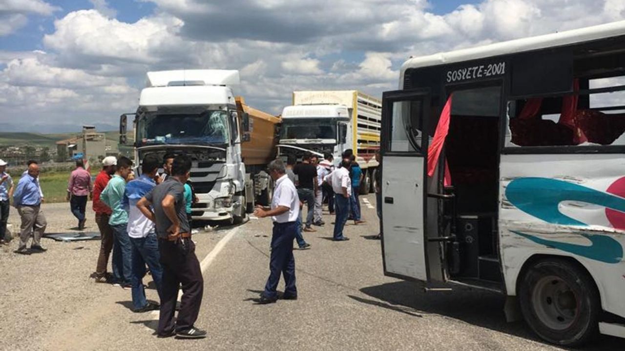Salih Emuştekin yönetimindeki 42 E 9973 plakalı canlı hayvan taşıyan kamyon da hızını alamayınca öndeki kamyona çarptı. Kazada midibüste bulunan 20 işçi yaralandı.