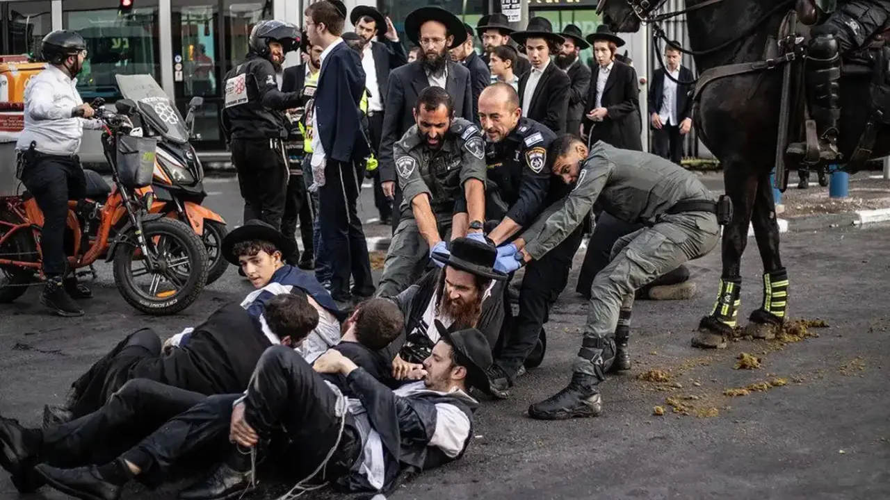 Siyonist işgal çetesi, zorunlu askerliği reddeden, bu kararları protesto etmek amacıyla yürüyüş düzenleyen siyonist işgalcilere sözde askerler müdahale etti.
