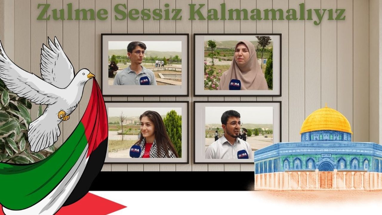 Gazze'deki zulme asla seyirci kalınmaması gerektiğini vurgulayan öğrenci Azad Barış, "Filistin'deki mazlum halkın yanında yer alan Amerika'daki öğrencilere ve dünyadaki tüm öğrencilere buradan selam olsun. Buradan herkese sesleniyorum. Bu zulme sessiz kalmamalıyız ve zulmü herkese duyurmalıyız. Ayrıca zulmü haykırmamız gerekiyor. İnşallah Gazze'nin özgür olduğu günü en kısa zamanda göreceğiz." diye konuştu.